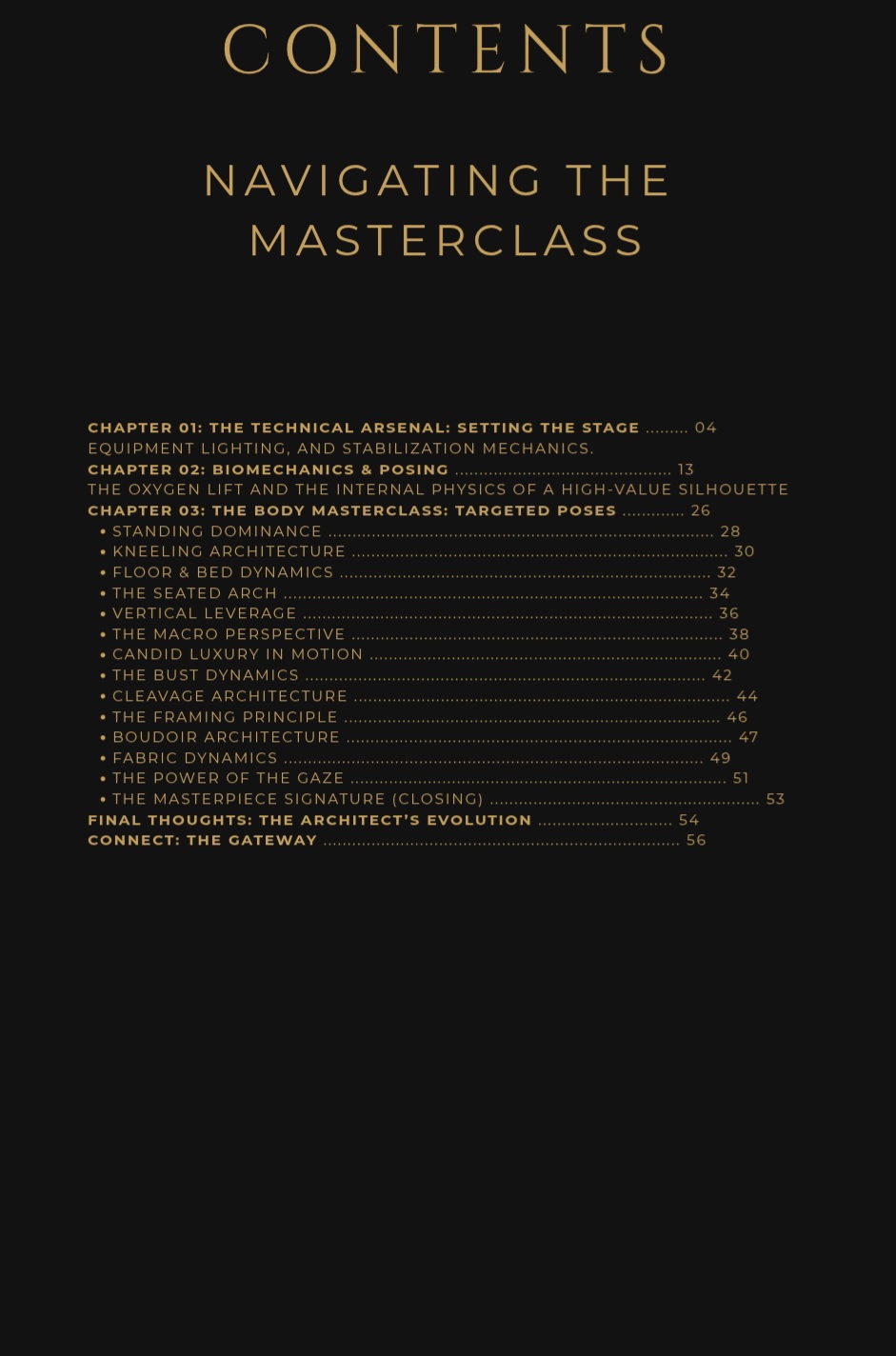 • The Physics of the S-Curve: Learn the “Oxygen Lift” and pelvic architecture to engineer your body for maximum visual impact without looking forced.
